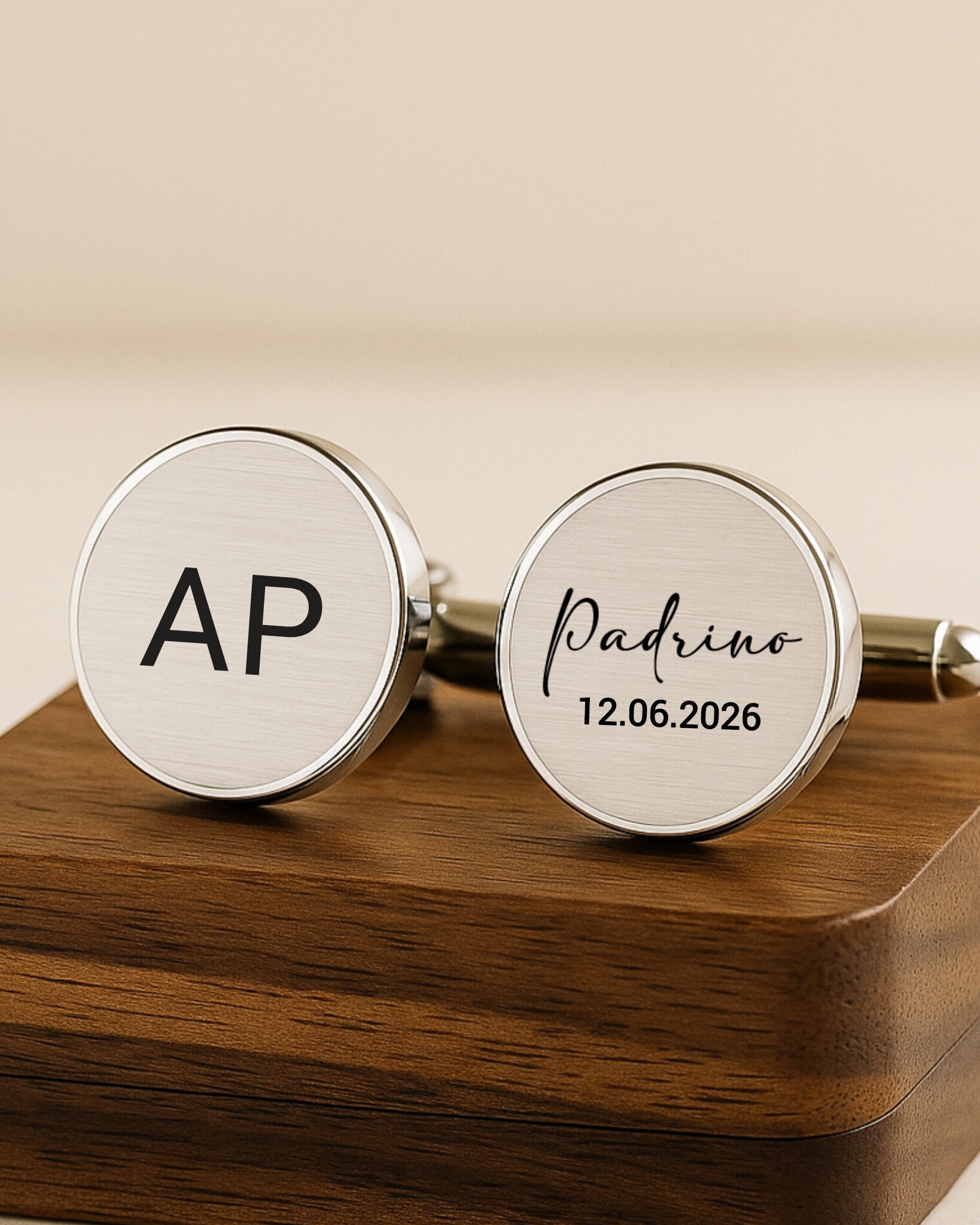 El padrino cumple un papel esencial en la boda: representa apoyo, confianza y amistad incondicional. Estos gemelos personalizados son la forma perfecta de agradecerle su presencia y su papel tan importante en este día.