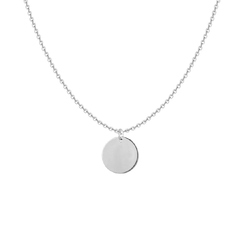 Collar en color plateado con colgante circulo. Este collar incluye una cadena de extensión para regular el largo del collar.